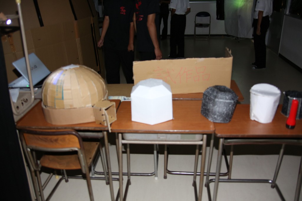 まずは試作品で投光機、生徒がすべて作った。