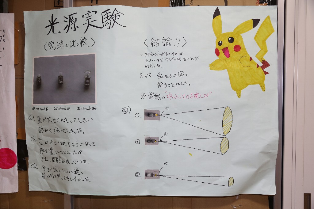 私は1年2組の副担任、みんなの輝きワンパックと題して、プラネタリウムやオーロラや天の川などいろいろなものを公開した。