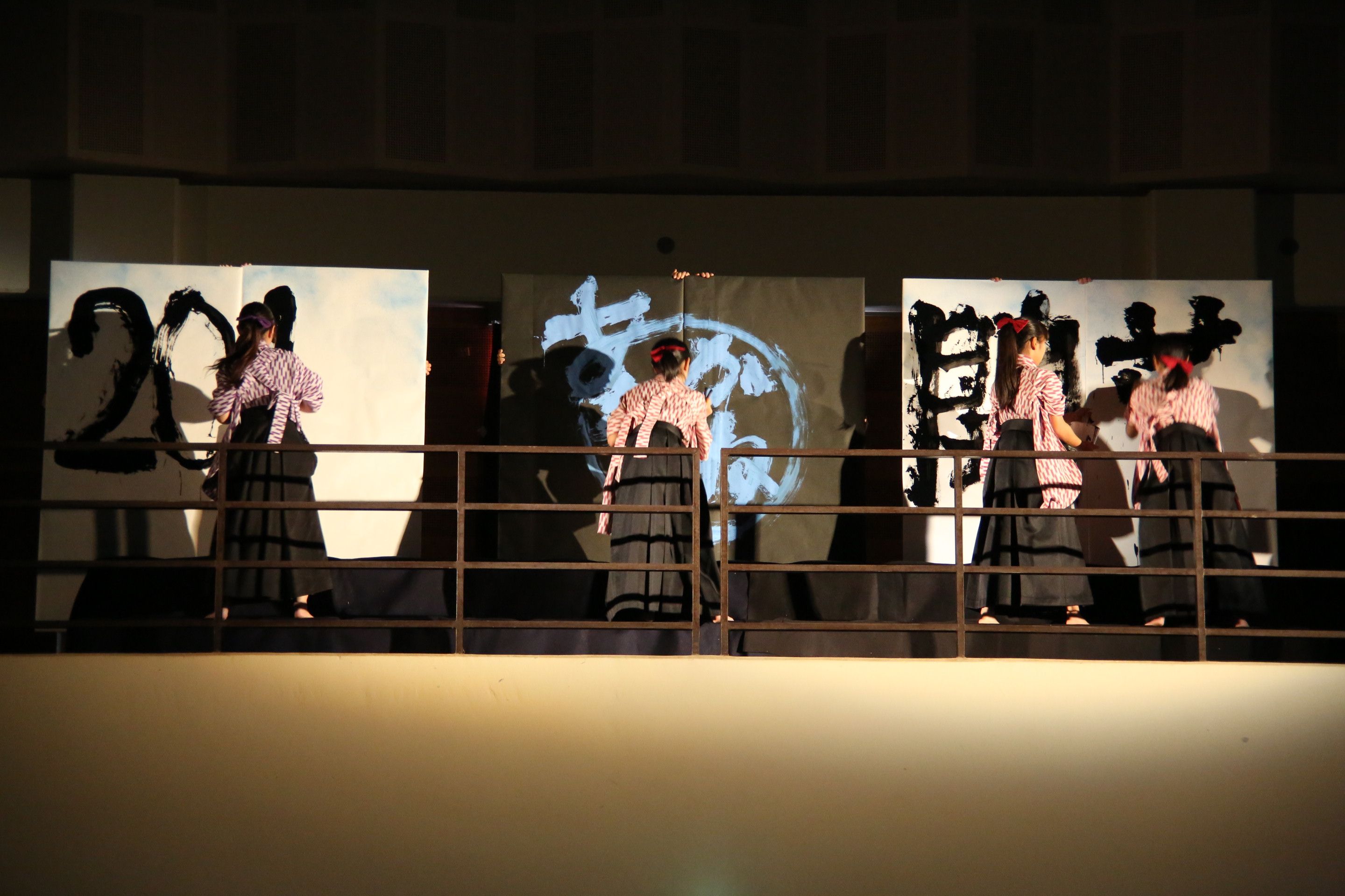 おまけに当日昼頃から急に晴れて、写真の書道パフォーマンスが体育館から中庭ですることになった。