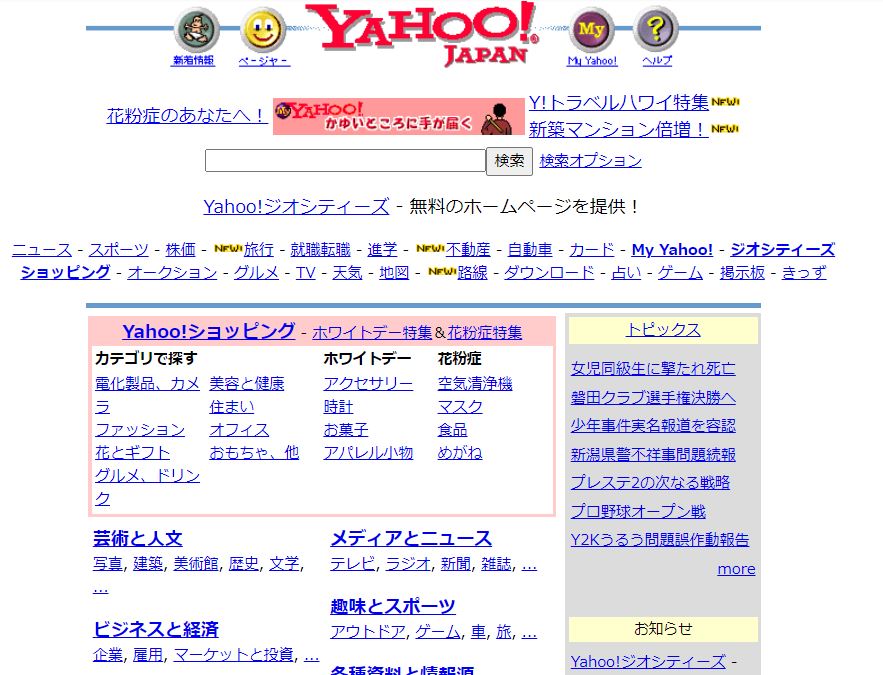 そうするとヤフーの2000年へタイムマシンすると次となった。