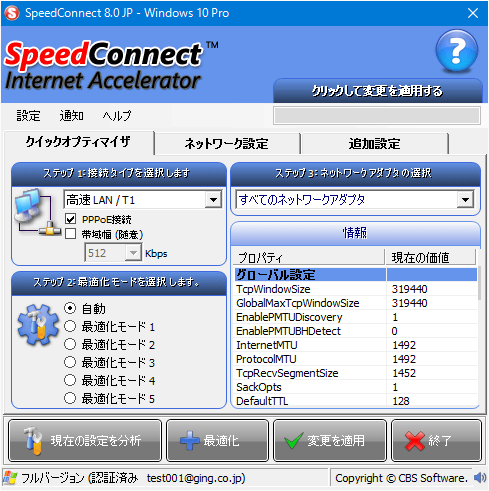 高度な知識がなくても簡単に操作できるインターネット接続速度改善ソフト。上級者であれば、設定状況を確認の上、細かく調整することも可能。