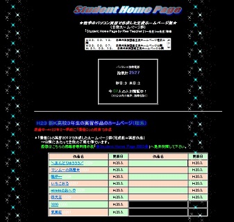 だいぶ遅れてしまったが、やっと今年の情報の実習で作成した生徒ホームページ集を追加できた。今回は理二コースの8名の分である。若干ロスがあり当初の予定ほどにはならなかったものの何とか完成に至った。