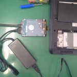 ハードディスクを慎重に取り出し特別な接続キットで接続をした。