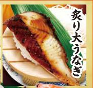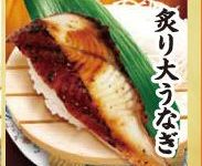 さらには回転テーブルで、大きな煽りウナギ寿司、