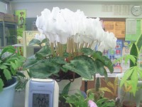 職員室のシクラメンが満開、葉の数より花が圧倒的に多い気がする。