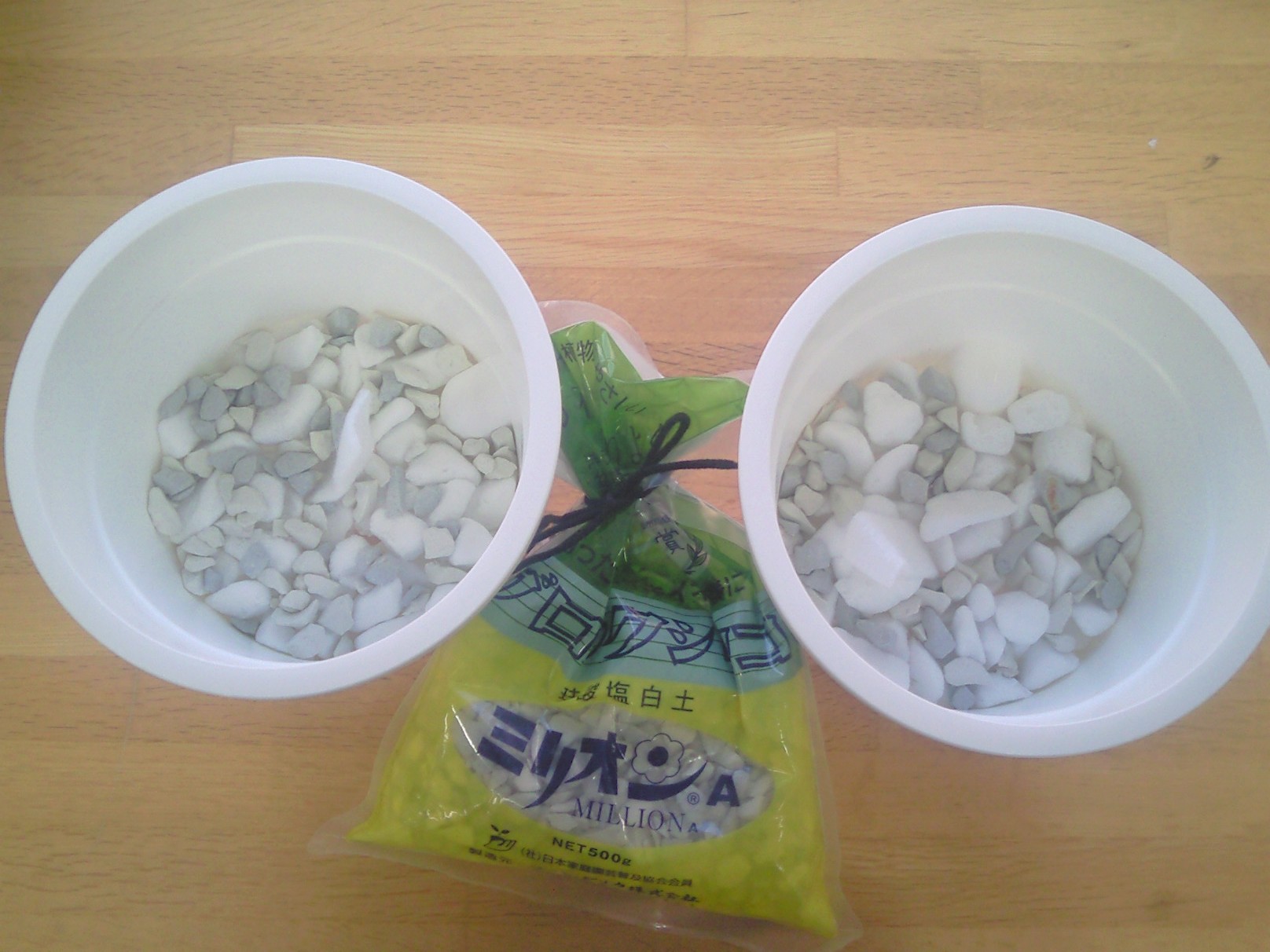 最初にミリオンAを鉢底に少々しいた。これで一応根腐れ防止のはず・・・裏技でもあるけど・・・・