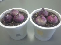 学校においていたチューウリップ、一度植えたが根が出ずに出直し研究。