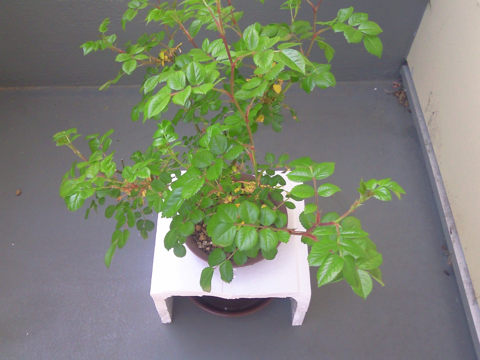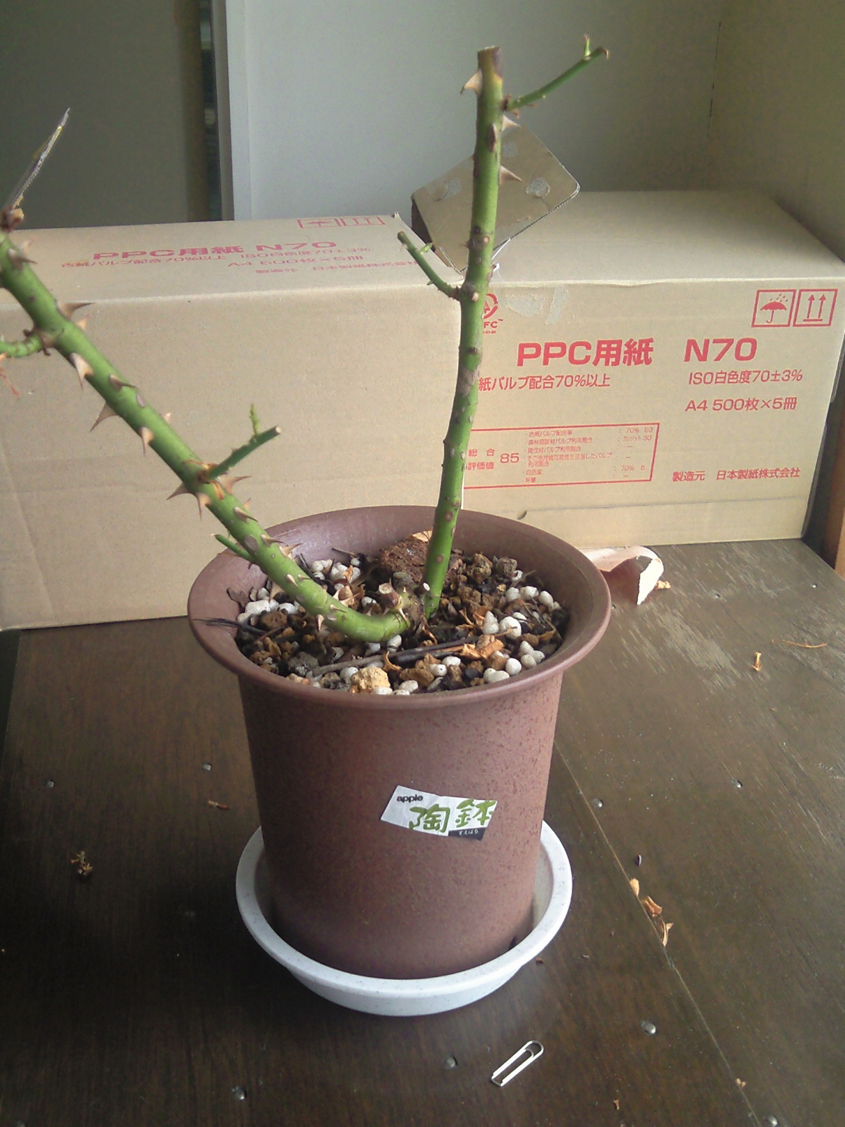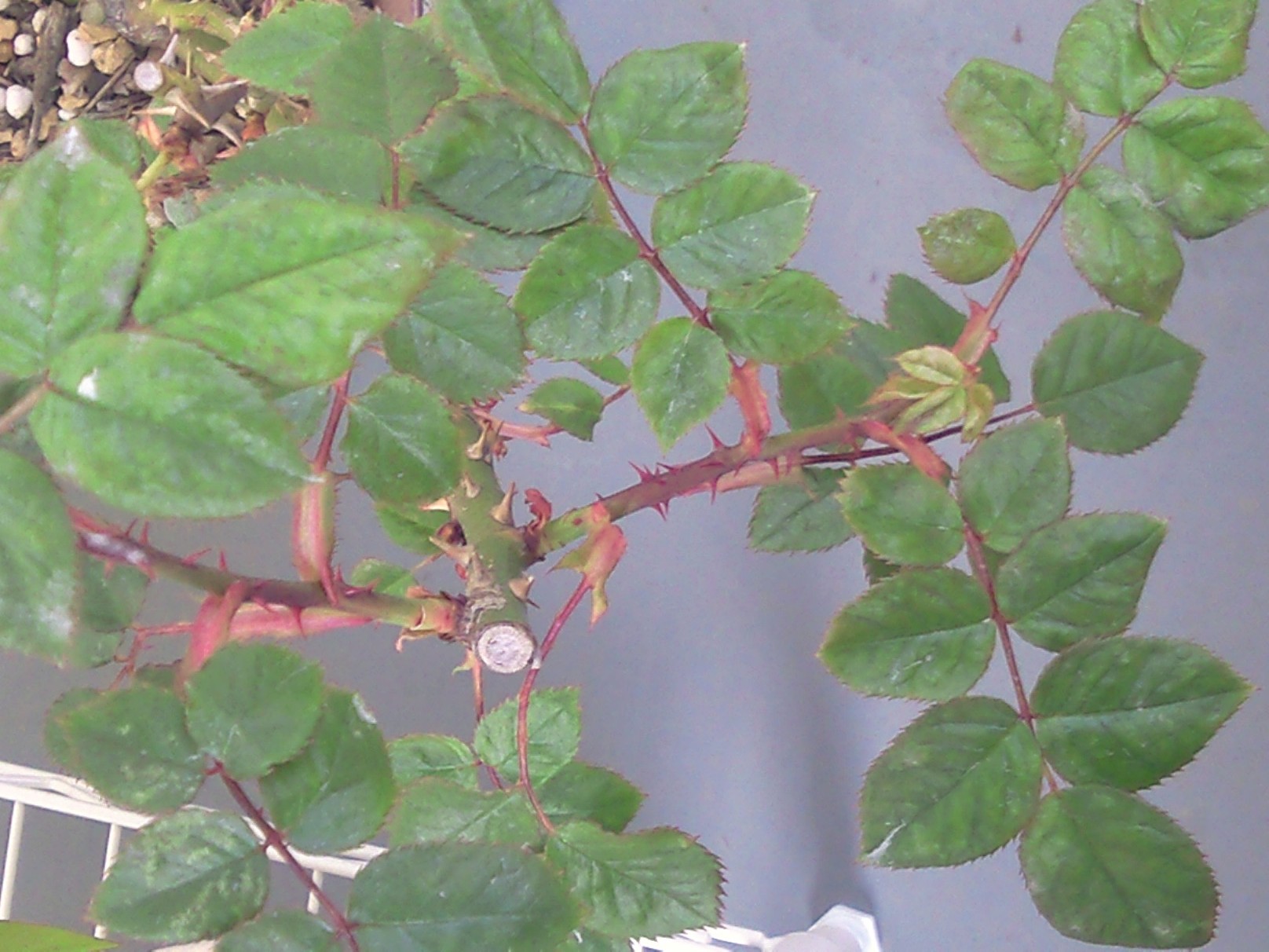 さらに、先日、うどん粉病で、枝葉をすべて剪定して落としたバラが何と新芽が出し始めていたのに気づいた。すごい生命力!植物は本当に不思議。