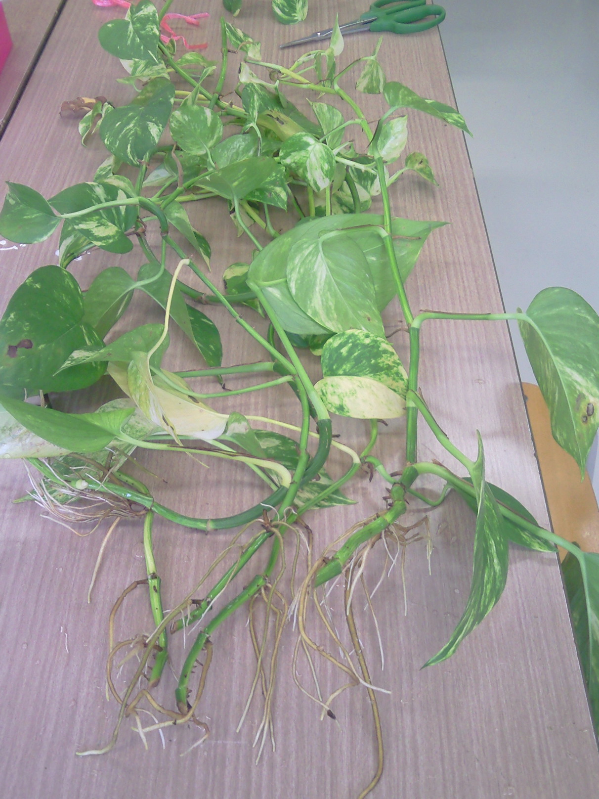 発根のため花瓶に刺していたポトス、ついに鉢上げのとき・・・・・むしろ遅いぐらい・・・・