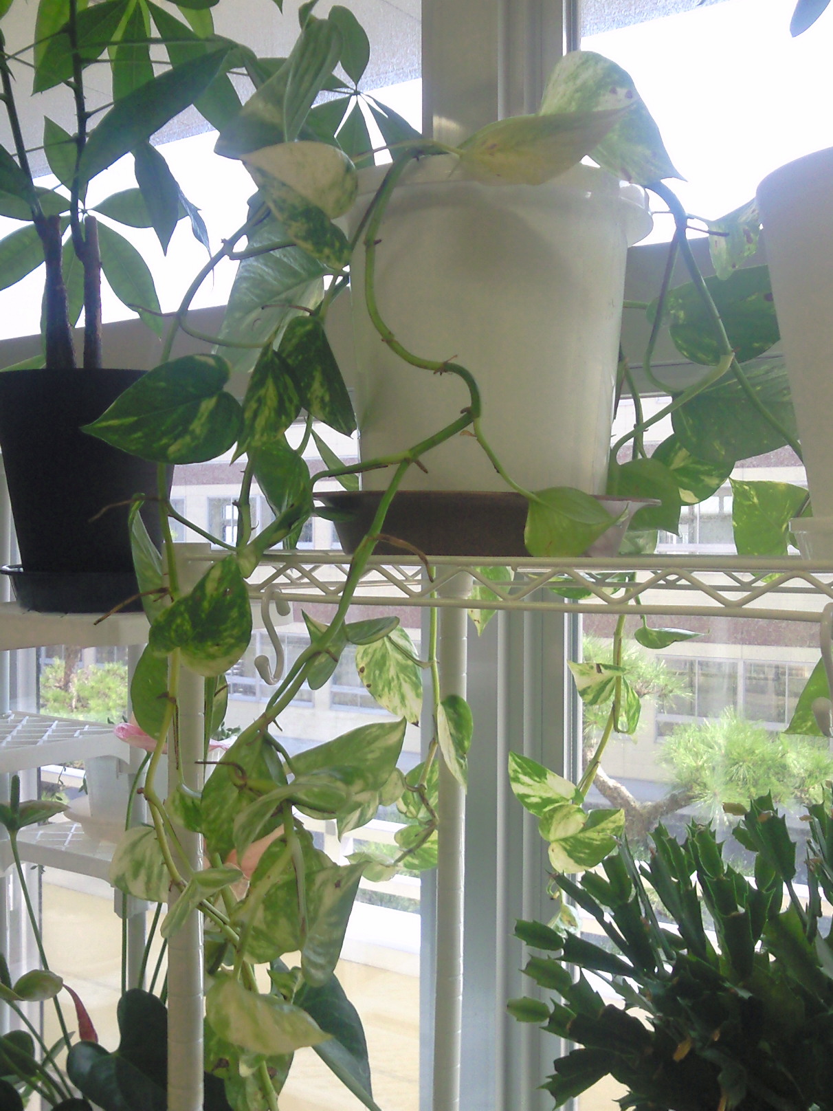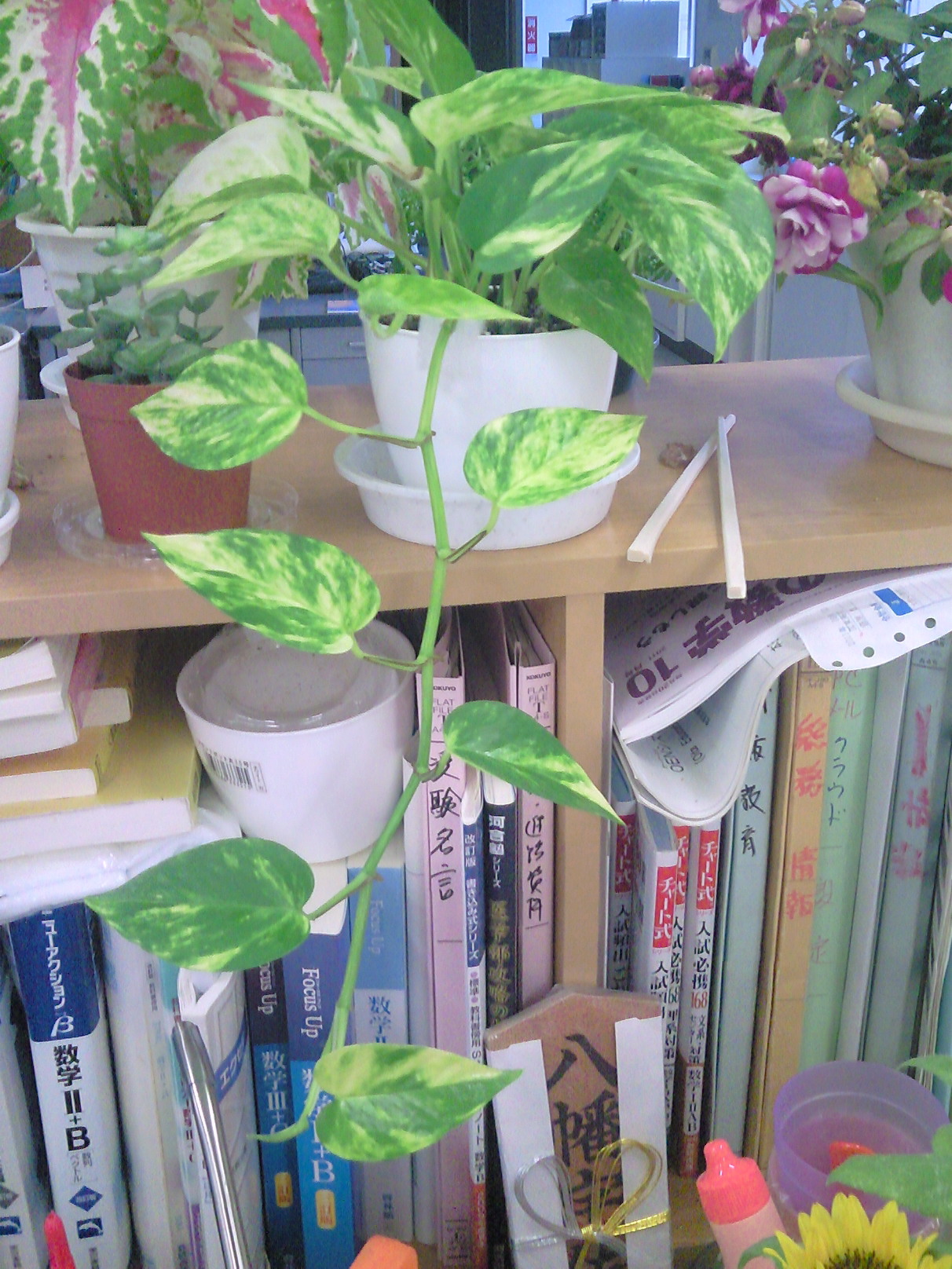 ここのところ急にポトスの成長が早くなってきた。垂れ下がった枝が一晩ごとに伸びていく。2ヶ月ほど全く伸びなかったのに、この秋になってどんどん伸びていく。